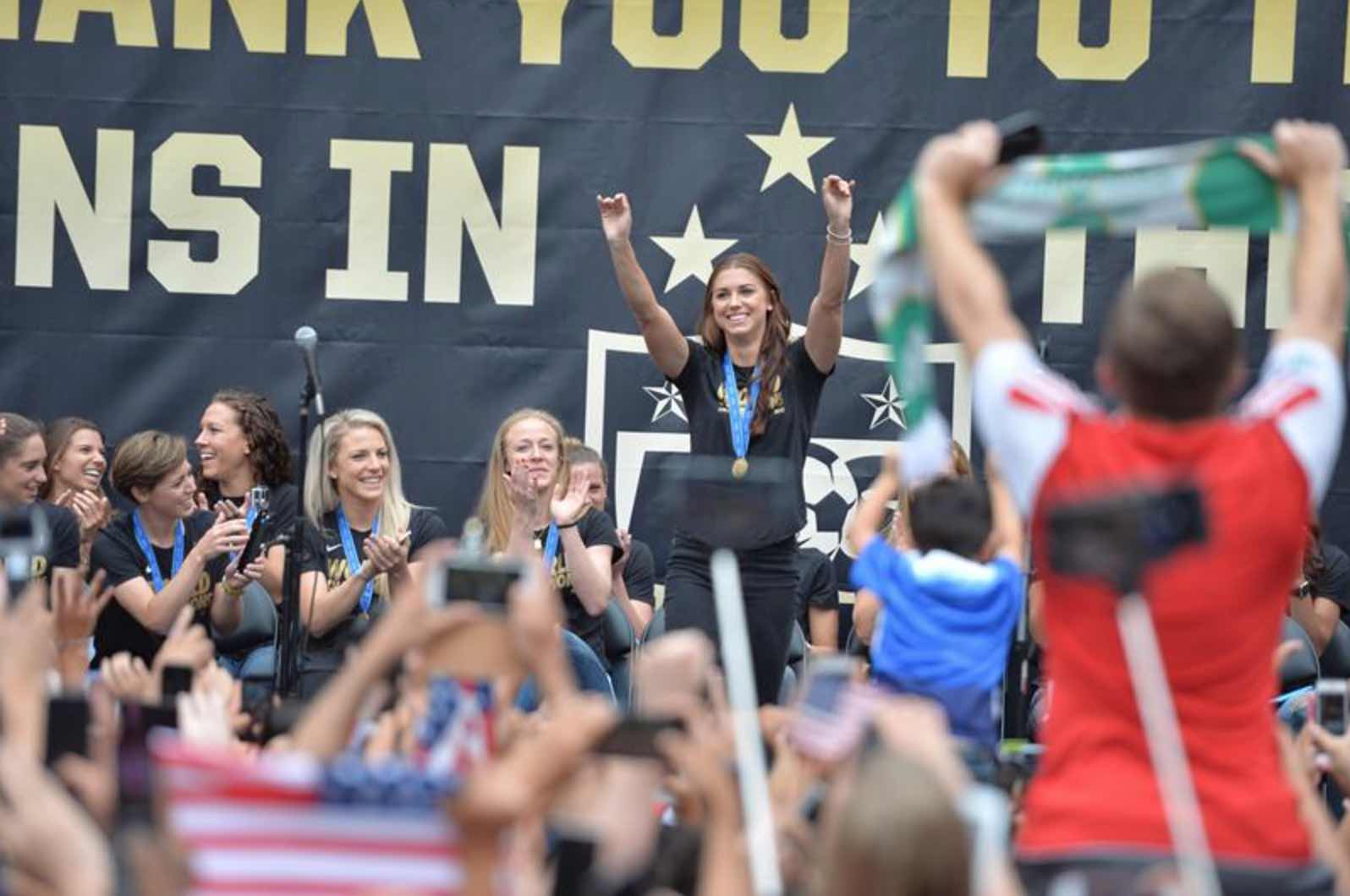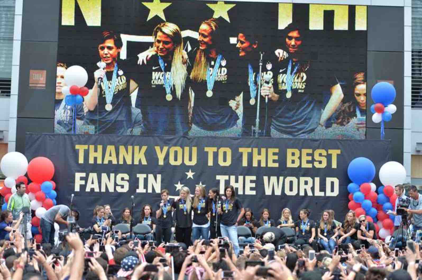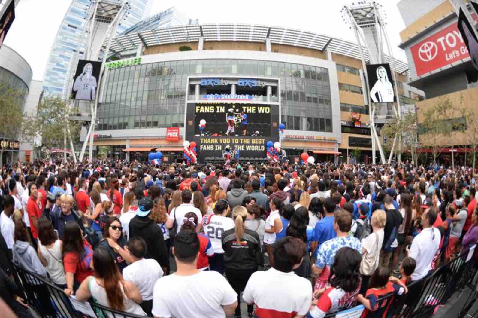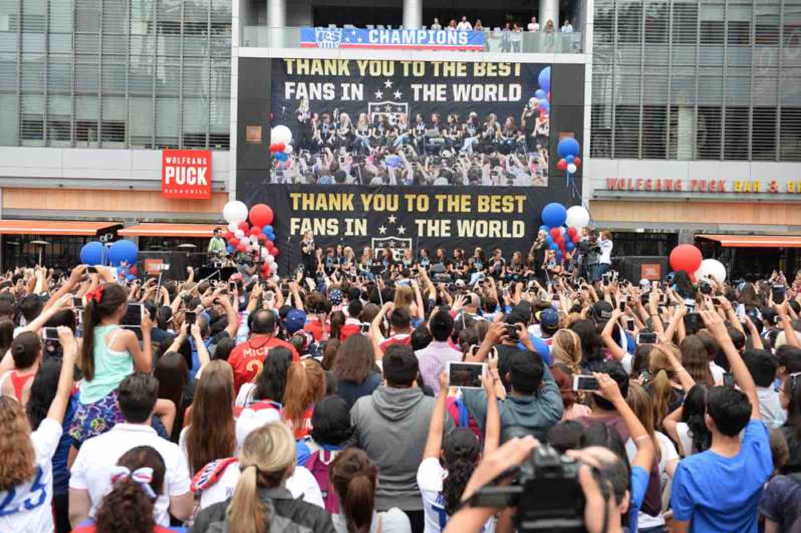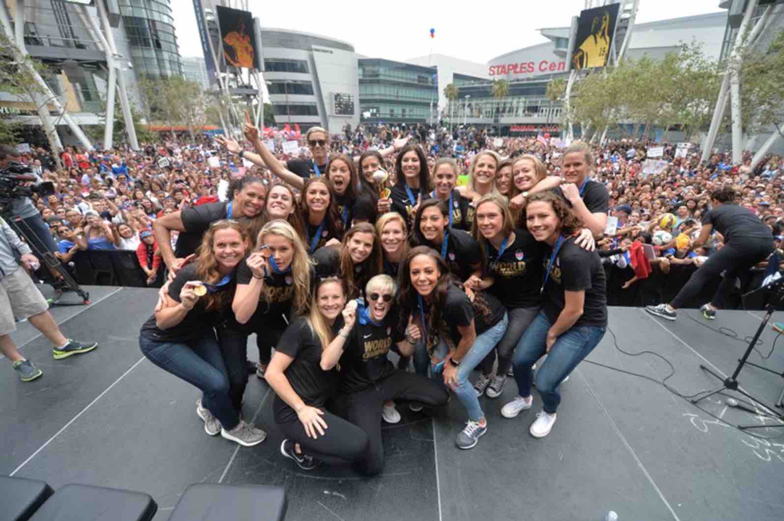 The U.S. Women’s National Team is back in the U.S. to celebrate their long-awaited title. Their first stop was in Los Angeles, where there were over 10,000 fans waiting for them at the fan rally. Some of them got there as early as 4:30 am to make sure they had a good spot.