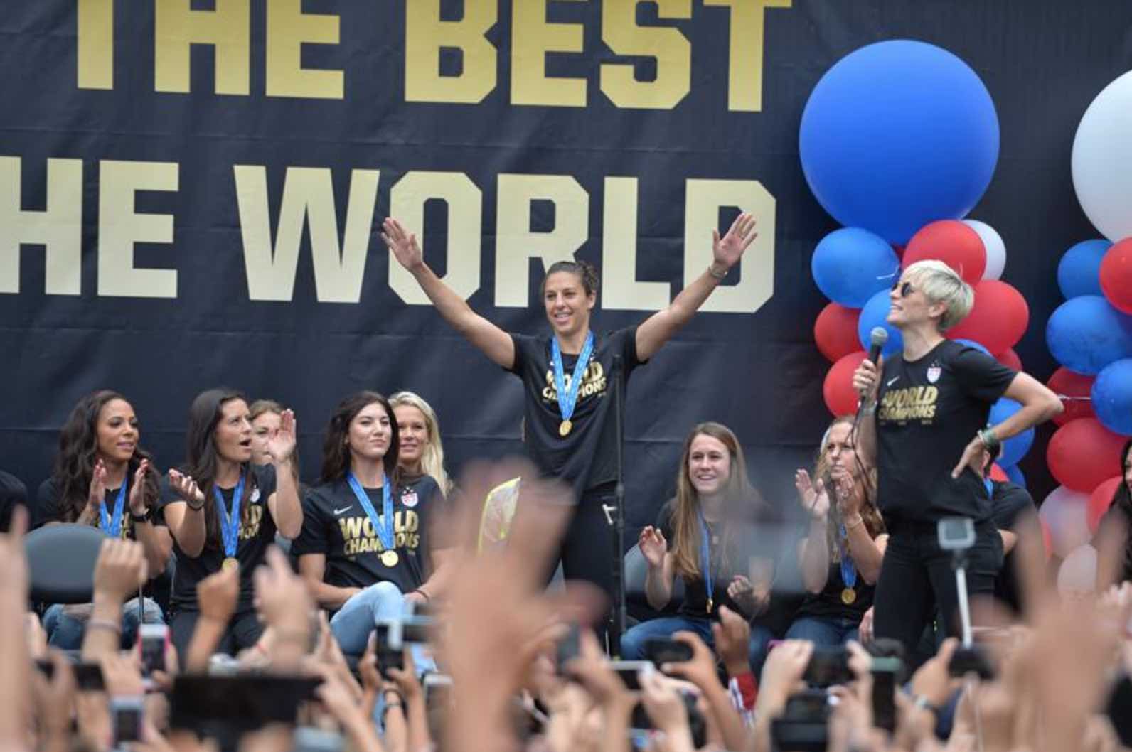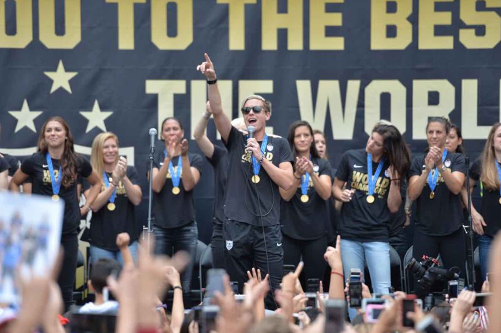 California natives Megan Rapinoe and Amy Rodriguez stepped in to introduce all of their teammates. Some of the other highlights were Hope Solo, who won the Golden Glove, as well as Carli Lloyd who had the hat trick in the final and was awarded the Golden Ball. Abby Wambach, Christie Rampone, Meghan Klingenberg, Julie Johnston, Becky Sauerbrunn and Ali Krieger also had a few words to say.
